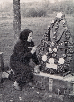 AdÄ—lÄ— JuozÄ—nienÄ— daro antkapinį paminklÄ…. Apie 1954–1955 m. Jis nÄ—ra iÅ¡likÄ™s. Nuotrauka iÅ¡ Lidijos MaÄiulienÄ—s albumo Kiekvienoje sodyboje buvo ir sodelis su auganÄiomis obelimis, vaiskrÅ«miais. Daugiausia buvo auginama antaninių, „sierinkų“, saldinių veislių obelų. Kai kurios iÅ¡ jų buvo skiepytos, kitos – iÅ¡ grÅ«do iÅ¡augusios. ŽmonÄ—s radÄ™ kur palaukÄ—je ar miÅ¡kelyje parsineÅ¡davo iÅ¡kasÄ™ namo ir pasisodindavo. Linos BaikauskaitÄ—s tÄ—vų sodyboje daug obelų buvo įskiepijusi mamos sesuo, puiki sodininkÄ— StasÄ— PetrulytÄ—-GiedrienÄ— iÅ¡ MikiÅ¡kių kaimo. Augo soduose raudoni ir juodi serbentai, vyÅ¡nios kiekvienoje pasodÄ—je. ŽmonÄ—s augino ir avietes. Pas JeronimÄ… BoikÄ… prieÅ¡ais gyvenamÄ…jį namÄ… augo avieÄių plotelis. Jo žmona Antanina virdavo labai gardžiÄ… avieÄių uogienÄ™ ir vaiÅ¡indavo sveÄius. Petras Laužikas, kai dar Lina laikÄ— Å eÅ¡elgių sode bites ir nuvažiuodavo kopinÄ—ti medaus, ateidavo su krepÅ¡eliu kriauÅ¡ių, o jam bÅ«davo įdedama Å¡viežio medaus. Å eÅ¡elgių sodyboje bitÄ—s laikomos ir dabar, tik jas jau prižiÅ«ri Alfredas ir Gaudentas Baikauskai.