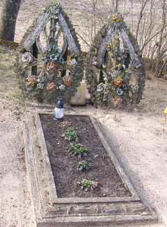 Paminklai prie Baikauskų Å¡eimos kapo JurÄ—niÅ¡kių kapinaitÄ—se. Sukurti savamokslÄ—s menininkÄ—s AdÄ—lÄ—s JuozÄ—nienÄ—s iÅ¡ MikiÅ¡kių kaimo. AuÅ¡ros JonuÅ¡ytÄ—s nuotrauka Minint buvusių kaimo gyventojų: senelių, prosenelių ar tÄ—vų atminimÄ… dažnai prisimenama ir jų amžino poilsio vieta – JurÄ—niÅ¡kių kaimo kapeliai, jau nuo seno priglaudžiantys JurÄ—niÅ¡kių, Vėželių ir BoÄiupio kaimų žmones. Nedidelis jų plotas aptvertas iÅ¡ akmenų sukrauta tvora, apsodintas medžiais ir alyvų krÅ«mais. Su metaliniais varteliais, manoma, kad padarytais vietinio kalvio. DeÅ¡inÄ—je vartelių pusÄ—je auga didžiulÄ— apie 200 metų senumo eglÄ—, jau kiek pasvirusi ir puÄiant vÄ—jui vis labiau linkstanti ant paminklų po ja. Senieji žmonÄ—s porino, kad kapų kalnelis neatsirado iÅ¡ niekur, o supiltas iÅ¡ suvežto smÄ—lio ir žvyro. Å iuo metu kapeliuose taisomi ir prižiÅ«rimi 35 kapai. 1990 metais, pagerbiant Äia palaidotus žmones, pastatytas meistro Edmundo BiÅ¡kausko ąžuolinis paminklas su užraÅ¡u: „Dekalogo metai. RamybÄ—s ilgimÄ—s po kryžiumi suklupę“. Žodžius, iÅ¡kaltus ant kryžiaus, parinko JanÄ— BaikauskaitÄ—-LaÅ¡ienÄ—, o medį kryžiui dovanojo Alfredas Baikauskas. Pinigus meistrui už darbÄ… surinko JurÄ—niÅ¡kių, BoÄiupio kaimų Äia palaidotų žmonių artimieji ir giminÄ—s. 1990 metų liepos 14 d. pastatytÄ… kryžių paÅ¡ventino SkapiÅ¡kio bažnyÄios klebonas Povilas Varžinskas. VaikÅ¡Äiojant ir apžiÅ«rint senuosius kapus, akis užkliÅ«va už įdomių dviejų vainikų paminklo Baikauskų Å¡eimos kapavietÄ—je. Tai AdÄ—lÄ—s JuozÄ—nienÄ—s, savamokslÄ—s meistrÄ—s iÅ¡ MikiÅ¡kių kaimo, kÅ«riniai. YpaÄ daug jos darbų buvo padaryta apie 1950–1960 metus, jų bÅ«tume radÄ™ sodieÄių kiemuose ir artimiausiose kapinÄ—se. Dabar galima surasti nuo laiko pasvirusius ir su iÅ¡blukusiomis spalvomis jos kÅ«rinius SkapiÅ¡kio ir MikiÅ¡kių kaimo kapinaitÄ—se, Eleonoros KerÅ¡ulienÄ—s ir BronÄ—s VaratinskienÄ—s sodybose, kaip atminimo ženklus liaudies meistrei.