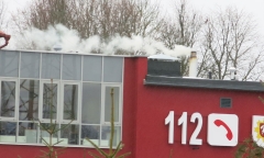 ant Kupiškio priešgaisrinės gelbėjimo tarnybos pastato stogo. Aplink